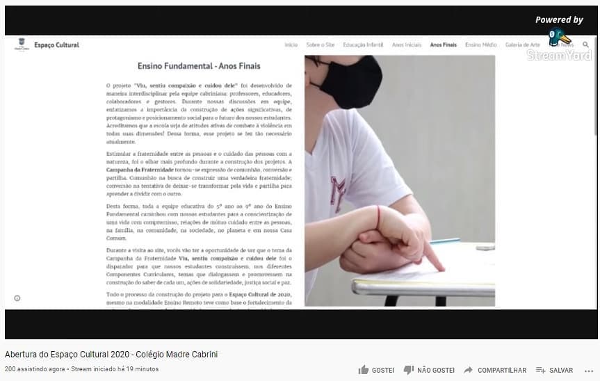 Com o tema da campanha da fraternidade 2020, “Viu, sentiu compaixão e cuidou dele”, nossos alunos fizeram um convite para que todo nós sejamos mais solidários com o outro, às necessidades, cuidados com as pessoas, os animais e o planeta!